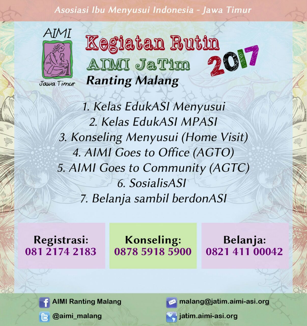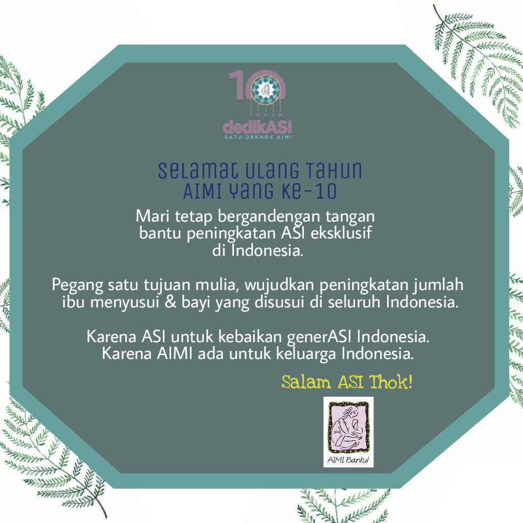 2. Memberikan informasi, pengetahuan, dan dukungan bagi para ibu untuk menyusui bayinya secara eksklusif selama 6 bulan dan meneruskannya sampai 2 tahun atau lebih, agar setiap ibu di Indonesia memiliki pengetahuan dan informasi yang cukup akan keutamaan menyusui serta Makanan Pendamping ASI rumahan berbahan pangan lokal yang berkualitas.